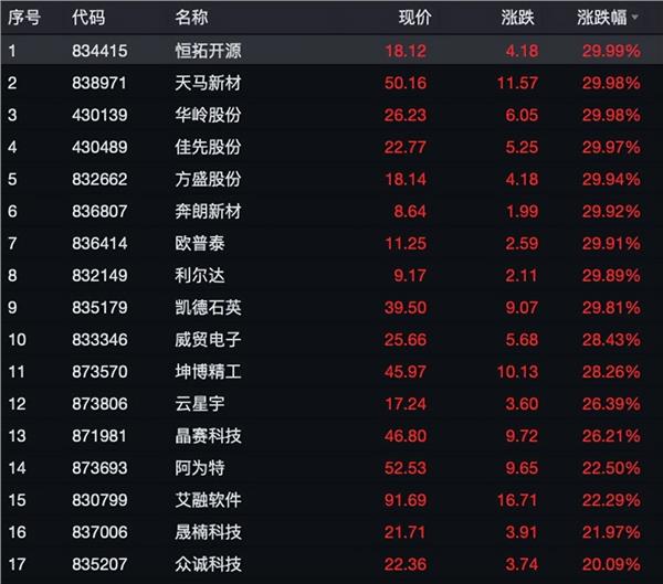 (原标题:刚刚,北证50爆发!多股涨超20%)