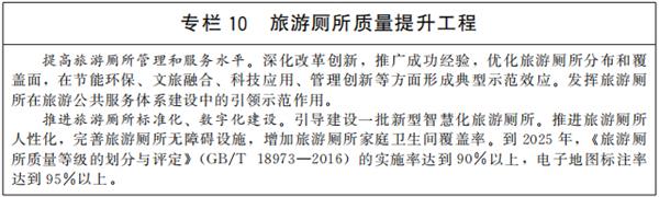 到2025年,旅游业发展水平不断提升,现代旅游业体系更加健全,旅游有效供给、优质供给、弹性供给更为丰富,大众旅游消费需求得到更好满足。疫情防控基础更加牢固,科学精准防控要求在旅游业得到全面落实。国内旅游蓬勃发展,出入境旅游有序推进,旅游业国际影响力、竞争力明显增强,旅游强国建设取得重大进展。文化和旅游深度融合,建设一批富有文化底蕴的世界级旅游景区和度假区,打造一批文化特色鲜明的国家级旅游休闲城市和街区,红色旅游、乡村旅游等加快发展。旅游创新能力显著提升,旅游无障碍环境建设和服务进一步加强,智慧旅游特征明显,产业链现代化水平明显提高,市场主体活力显著增强,旅游业在服务国家经济社会发展、满足人民文化需求、增强人民精神力量、促进社会文明程度提升等方面作用更加凸显。