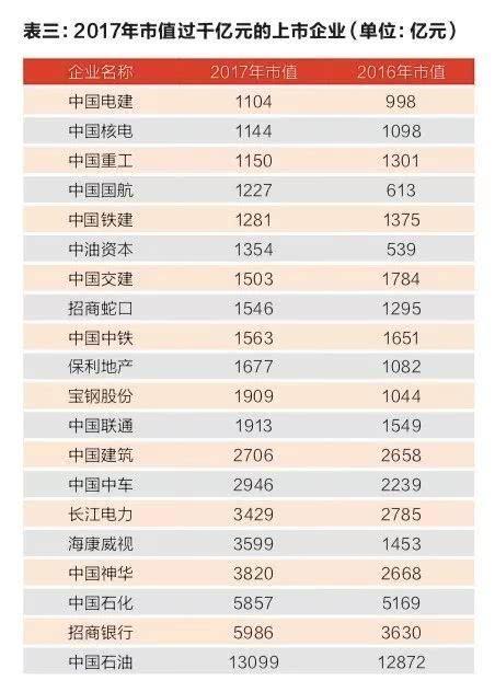 2016年到2017年,市值变化较大的上市公司有如下几家:中国铝业,市值从462亿元到886亿元,几乎翻了一番;国航从613亿元到1227亿元,实现翻番;五矿资本从64亿元,涨到442亿元,增长近7倍;中油资本从53亿元到1354亿元,增长超过20倍。